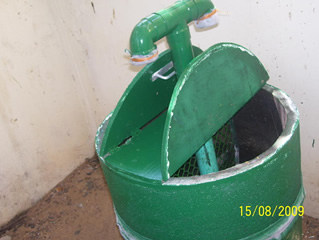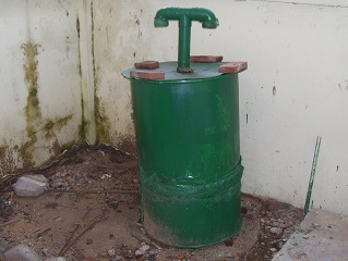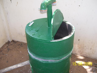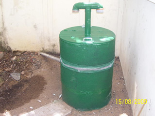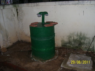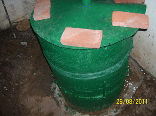 1, From the feed back from the users,3 concrete rings used for the tank were replaced by one plastic drum , which is cheaper and lighter for handling, have very long life. The FRP cover on top, the plastic sieve supporting the 2 inches ventilation pipe at center, window at bottom for taking out organic manure are the same as before.